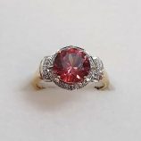 £399 Stock number: 71-26-225REDUCED Pink sapphire & pave diamond yellow gold ring. Sapphire weighs approx 1.50ct, total diamond weight approx 0.16ct. 18ct gold, made circa 2016. New replacement value £1,600. Previously priced at £699.
