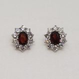 £799 Stock number: 51-17-021REDUCED Red garnet and diamond oval cluster stud earrings. Total garnet weight approx 1.80ct. Total diamond weight approx 1.20ct. Colour range H-I, clarity SI assessed. 18ct white gold. New replacement value £2,100. Previously priced at £999.