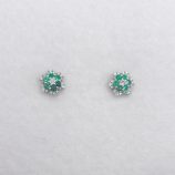 On Deposit - SALE AGREED£699Emerald & diamond cluster stud earrings. Total emerald weight approx. 0.60ct. Total diamond weight approx. 0.30ct, colour G-H, clarity VS-SI assessed. 18ct white gold. New replacement value £1,500.