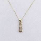£199Yellow gold & chocolate diamond trilogy drop necklace. Total diamond weight approx. 0.50ct, clarity I1-I2 assessed. 9ct gold. New replacement value £650.