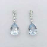 £3,499Aquamarine & diamond drop earrings. Total pear cut aquamarine weight approx. 20.80ct. Total diamond weight approx. 1.00ct, colour I-J, clarity VS-SI assessed. Length 36mm. 18ct white gold. New replacement value £5,500.