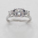 £4,999 Stock number: 42-47-015Fine quality three stone diamond ring. Round brilliant cut diamond total weight approx 1.50ct, colour G-H, clarity VS assessed. Platinum, made circa 2005. New replacement value £9,999