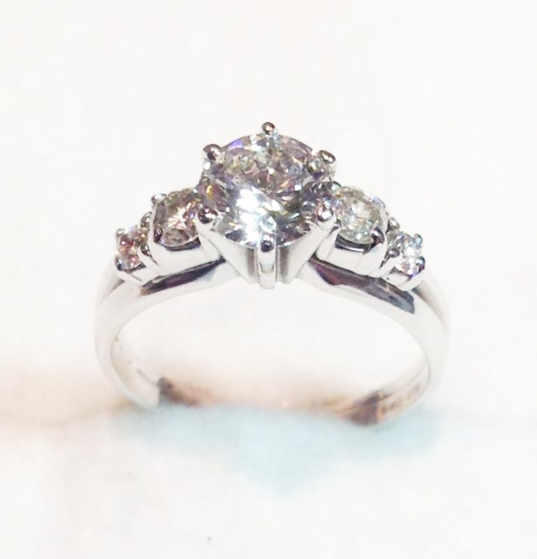 Approx 1.45ct diamond solitaire ring with diamond shoulders. Colour J-K, clarity SI assessed. 14ct gold. New replacement value £7,999
