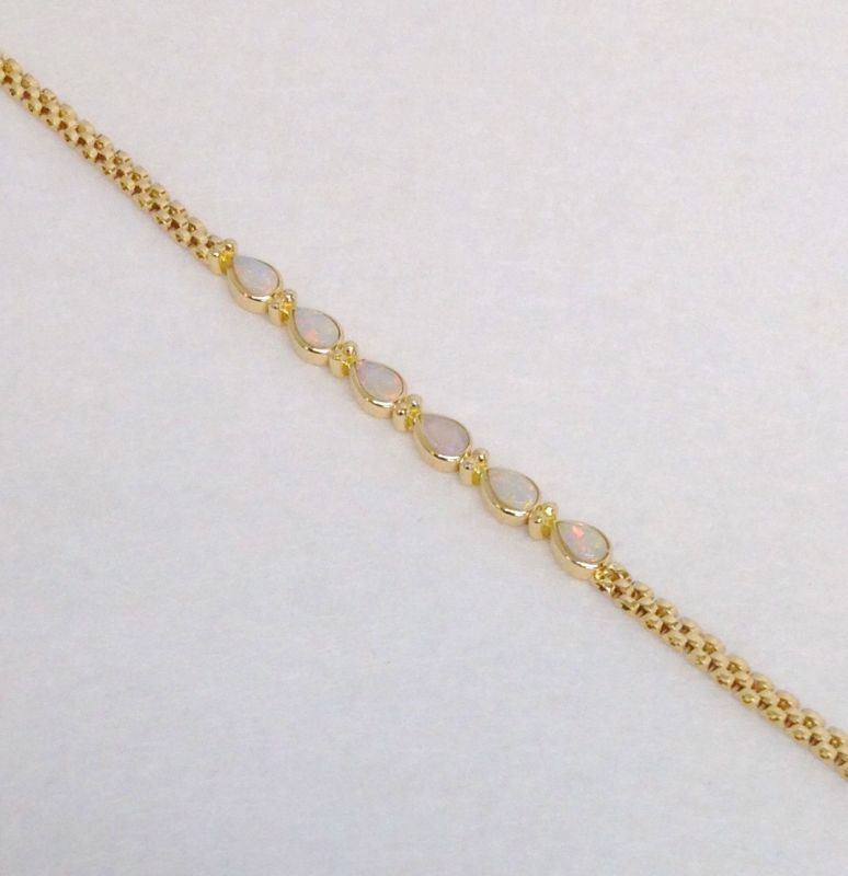 Pear-shaped cabochon opals set in 18ct yellow gold, brick-link bracelet. Length approximately 7 inches. New replacement value £900