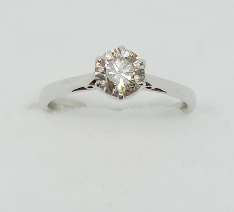 Approx 1.05ct diamond solitaire ring. Colour J-K, clarity P1-2 assessed. 18ct gold. New replacement value £4,500