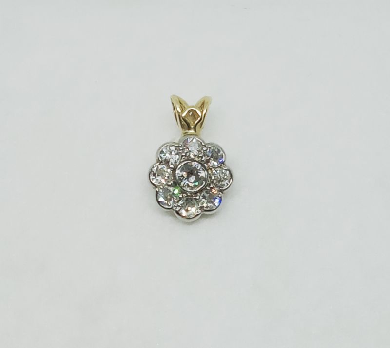 Palladium & 14ct yellow gold diamond cluster pendant. Total diamond weight approx 0.39ct. Colour H-I, clarity VS-SI assessed. New replacement value £650