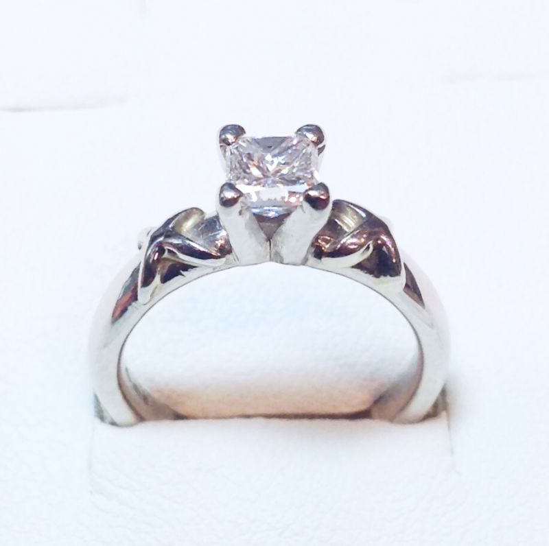 REDUCED Approx 0.58ct princess cut diamond solitaire ring. Colour G-H, clarity VS2-SI1 assessed. Platinum. New replacement value £3,400. Previously priced at £1,999