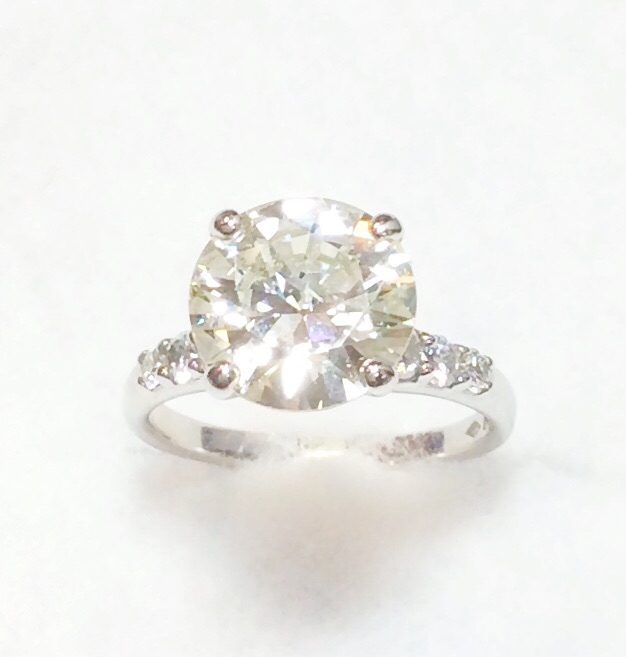 Approx 3.08ct fancy light yellow round brilliant diamond solitaire. Clarity VS assessed. Pave diamond shoulders platinum ring. New replacement value £28,250
