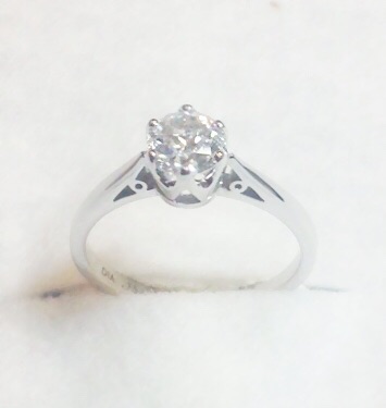 REDUCED 0.75ct round brilliant diamond solitaire ring. Colour E-F, clarity P2-3 assessed. 18ct gold. New replacement value £2,350. Previously priced at £1,199