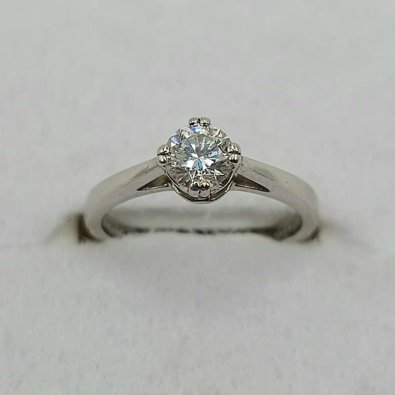 Platinum diamond solitaire ring. Round brilliant diamond weighs approx. 0.52ct, colour H, clarity VS2 (assessed). New replacement value £3,250.