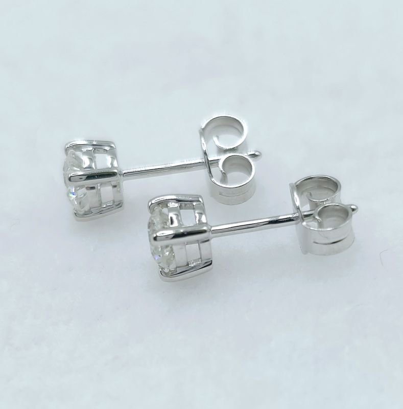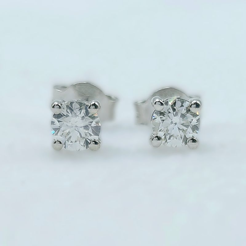 White gold & diamond solitaire stud earrings. Total diamond weight approx. 0.70ct, colour H-I, clarity SI2-I1 (assessed). 18ct gold. New replacement value £2,150