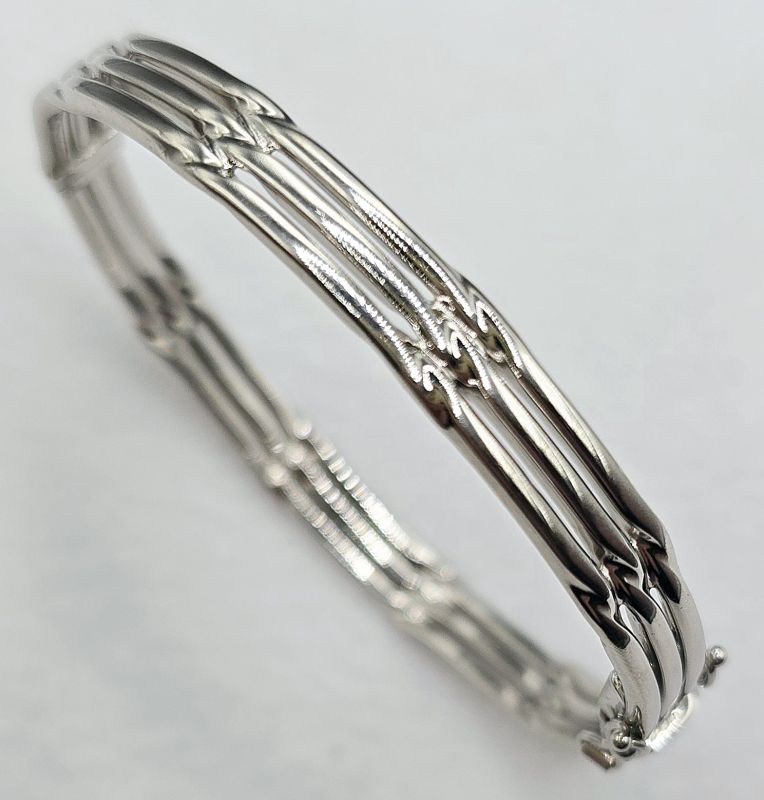 SECONDHAND GOLD White gold fancy twist bangle. 15.4 grams weight. 9ct gold.