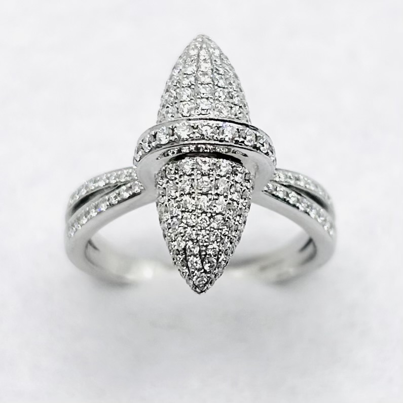 Boodles white gold & pavé diamond “Velocity” ring. Total diamond weight approx. 1.24ct, colour F-G, clarity VS1-VS2 assessed. 18ct gold. New replacement value £6,500.