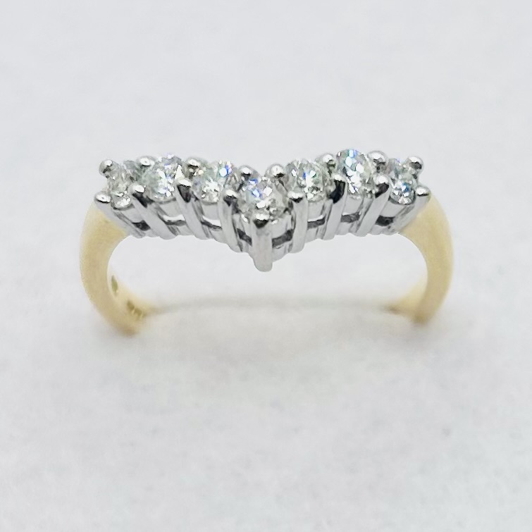 Yellow gold & round brilliant cut wishbone ring. Total diamond weight approx. 0.50ct, colour H-I, clarity I1-I2 assessed. 18ct gold. New replacement value £1,500.