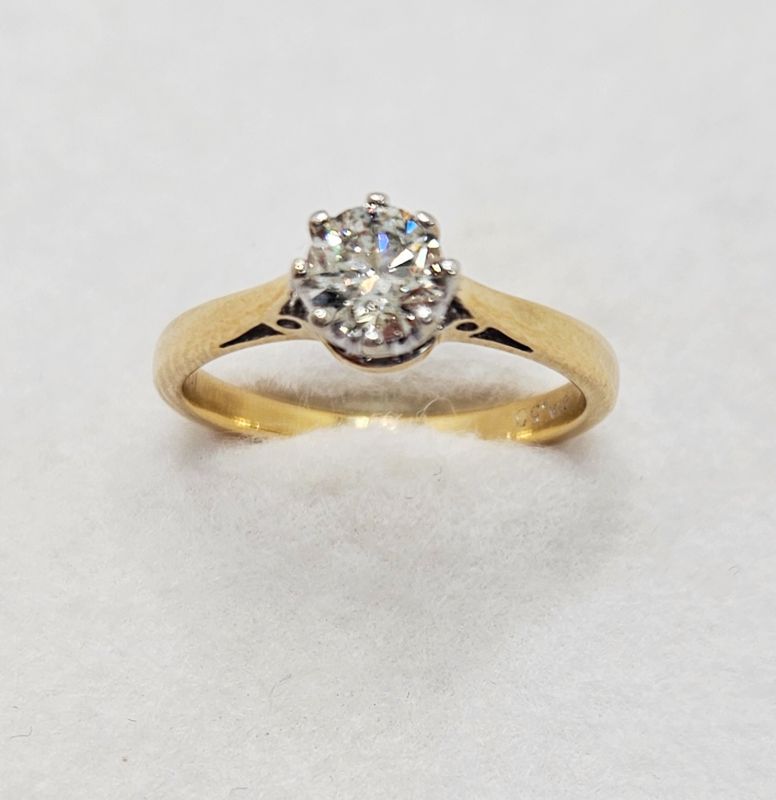 0.73ct diamond solitaire ring. Colour H-I, clarity VS. 18ct gold