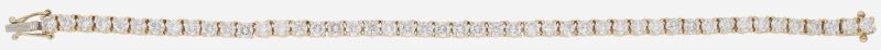 Yellow gold & diamond tennis bracelet. Total diamond weight approx. 5.64ct, colour H-I-J, clarity VS-SI assessed. Length 174mm. 18ct gold. New replacement value £12,000.