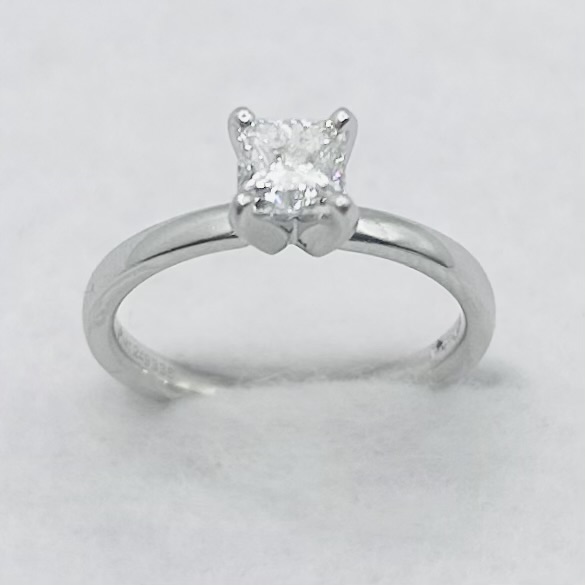 Platinum & princess cut diamond solitaire ring. Diamond certified by the GIA to weigh 0.60ct, colour E, clarity VVS1. New replacement value £2,900.