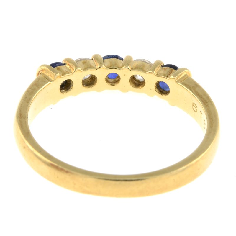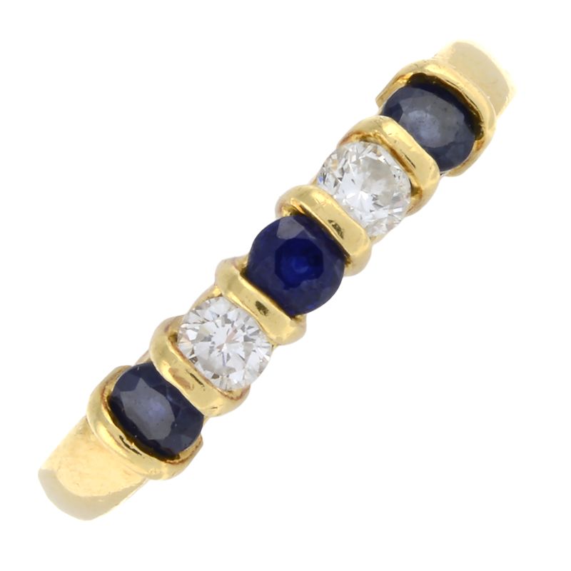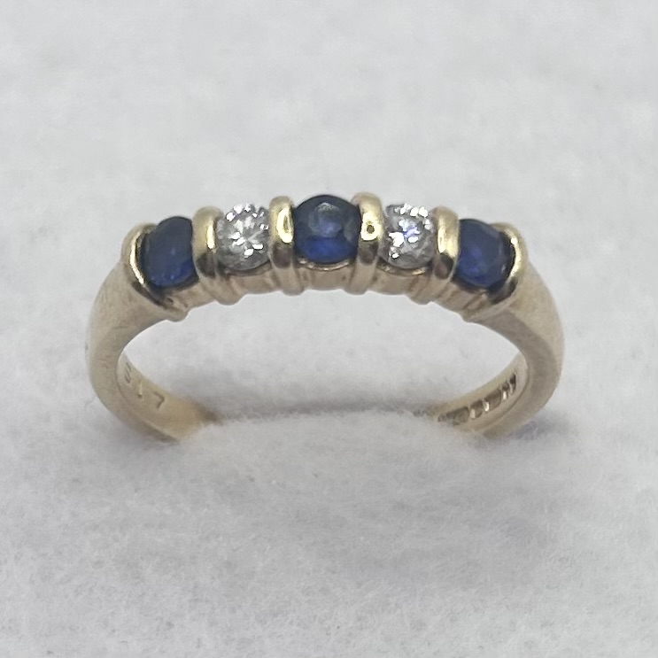 Vintage sapphire & diamond ring by Disdale & Ellis circa 1997. Total sapphire weight approx. 0.30ct. Total diamond weight approx. 0.17ct, colour H-I, clarity SI1-SI2 assessed. 18ct yellow gold. New replacement value £1,400.