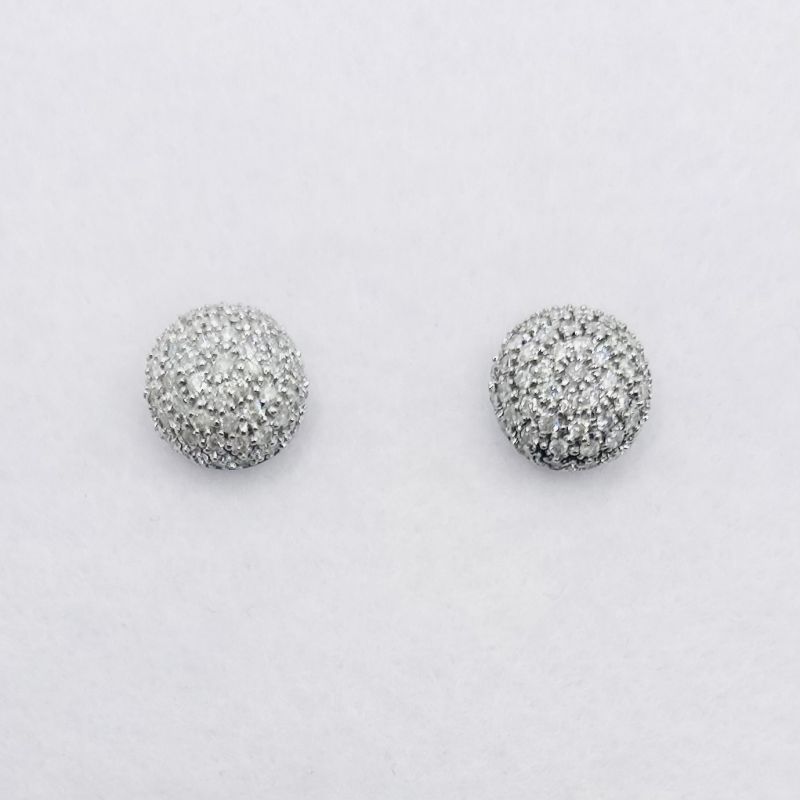 White gold & pavé diamond domed circle earrings. Total diamond weight approx. 1.00ct, colour G-H, clarity I1-I2 assessed. 9ct gold. New replacement value £1,400.