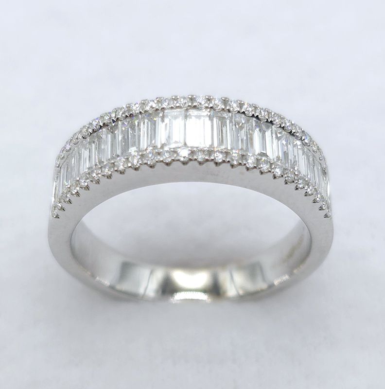 White gold & mixed cut diamond ring. Total diamond weight approx. 1.14ct, colour F-G, clarity VS-SI (assessed). 18ct gold. New replacement value £3,500.