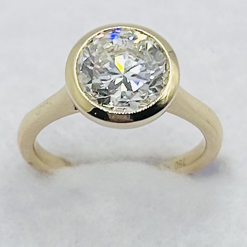 Yellow gold & round brilliant cut diamond solitaire ring. Secondhand diamond confirmed by GCS to weigh 2.55ct, colour J, clarity VS2. 18ct gold. New replacement value £27,000. Brand new ring mount.