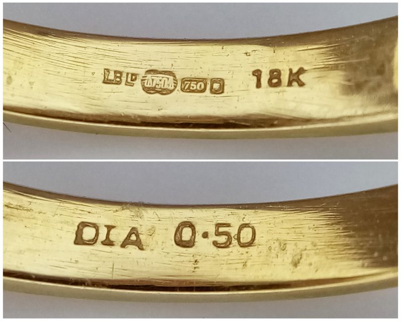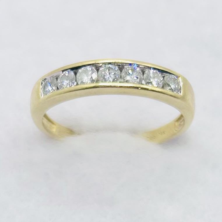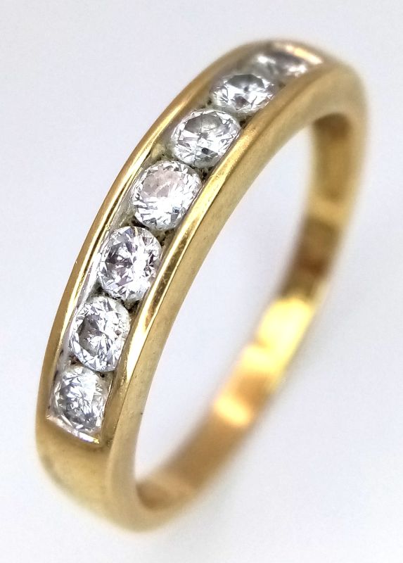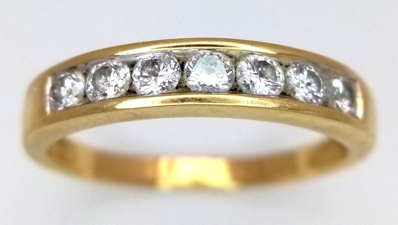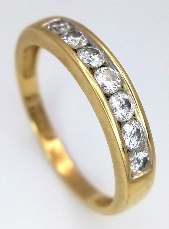 Yellow gold & diamond half eternity ring. Total diamond weight approx. 0.50ct, colour H-I, clarity I1 assessed. 18ct gold. New replacement value £1,400.