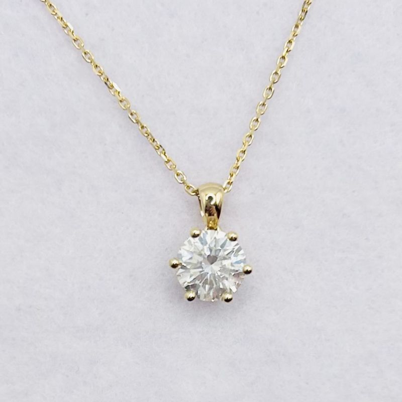 Yellow gold & “fancy white” diamond drop pendant. Secondhand diamond weighs approx. 2.10ct, colour J-K, clarity SI1-SI2 assessed. 18ct gold. New replacement value £9,000. Brand new pendant mount.