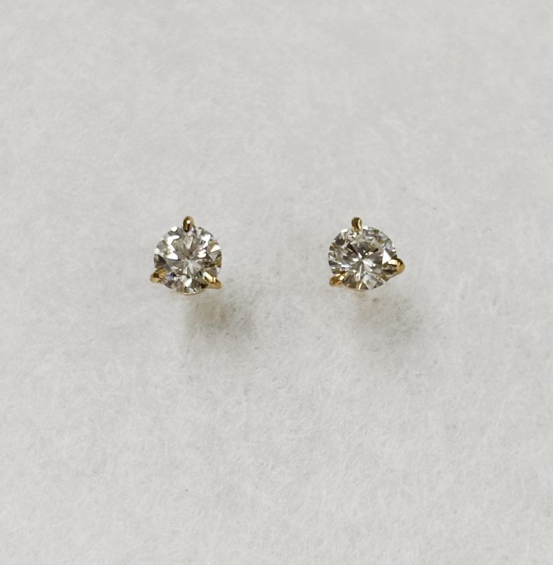 Yellow gold & diamond stud earrings. Total diamond weight approx 0.76ct. Colour G-H, clarity VS1-VS2 assessed.18ct gold. New replacement value £2,800. Brand new setting.