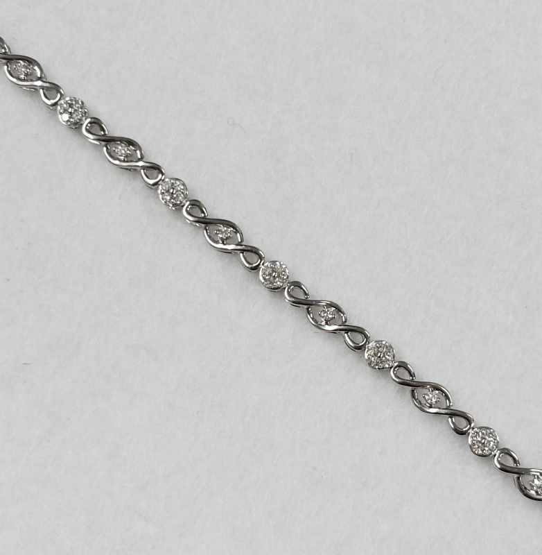 White gold & diamond line bracelet. Total diamond weight 0.50ct (stated). Colour G-H-I, clarity I1 assessed. 9ct gold. New replacement value £1,300.