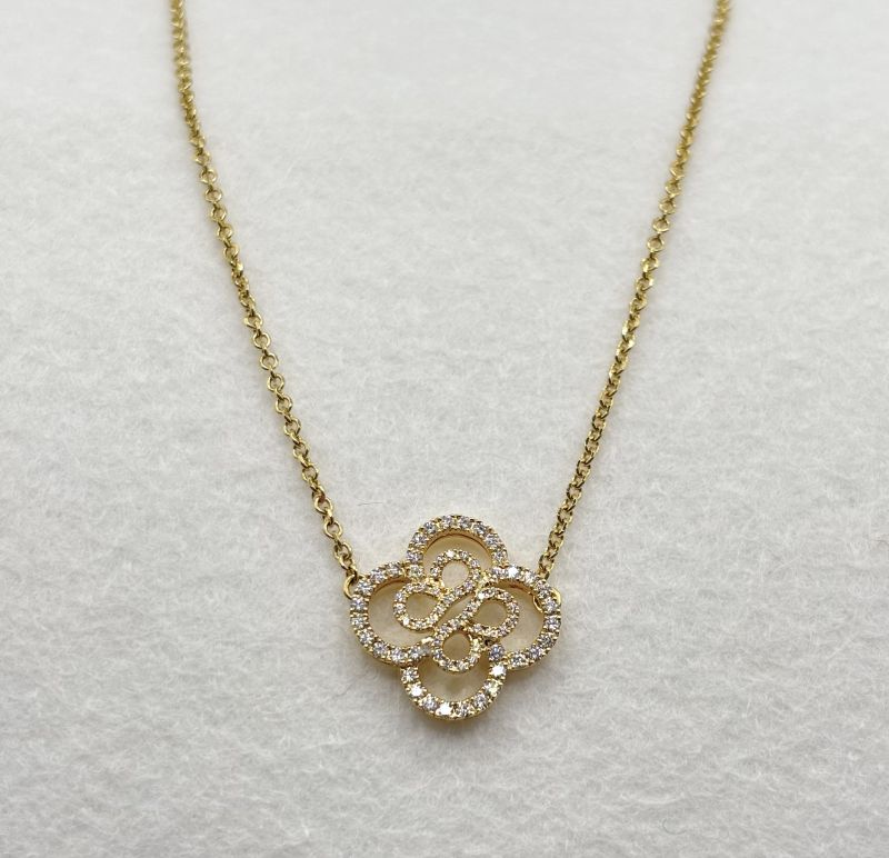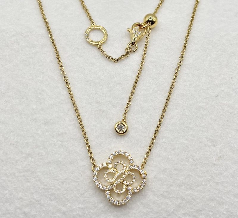 Yellow gold & pavé diamond “Be Boodles” double motif necklace by Boodles. Total diamond weight approx. 0.40ct, colour F-G-H, clarity VS-SI assessed. 18ct gold. New replacement price £4,800.