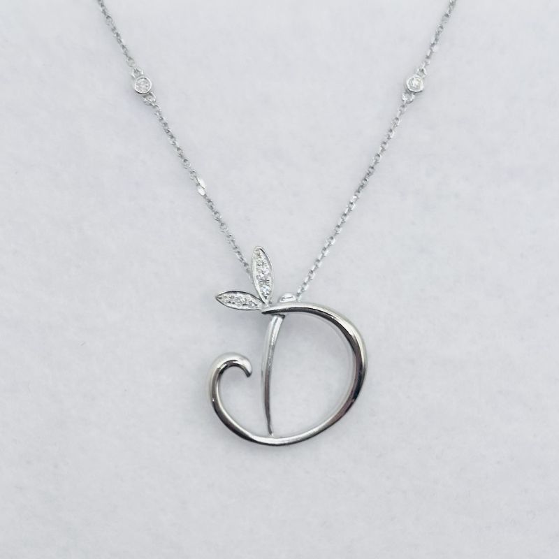 Boodles 18ct white gold & diamond love letter D pendant. Total diamond weight approx. 0.04ct. Non-branded 18ct white gold 16 inch diamond set fine chain included.