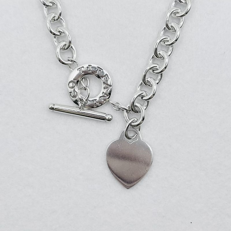 Tiffany & Co “Return to Tiffany” T-bar & heart tag necklace. Sterling silver. Weighs 74.8 grams.