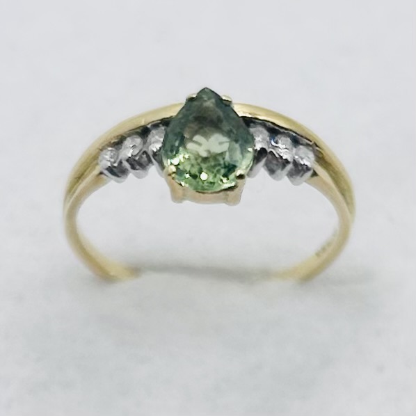 Green sapphire & pavé diamond ring. Green sapphire weighs approx. 1.10ct. Total diamond weight approx. 0.10ct, colour I-J-K, clarity VS-SI assessed. 18ct yellow gold. New replacement price £1,200.