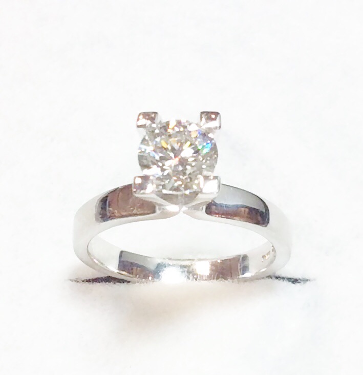 Approx 1.05ct diamond solitaire ring. Colour J-K, clarity P1-2 assessed. 18ct gold. New replacement value £4,500