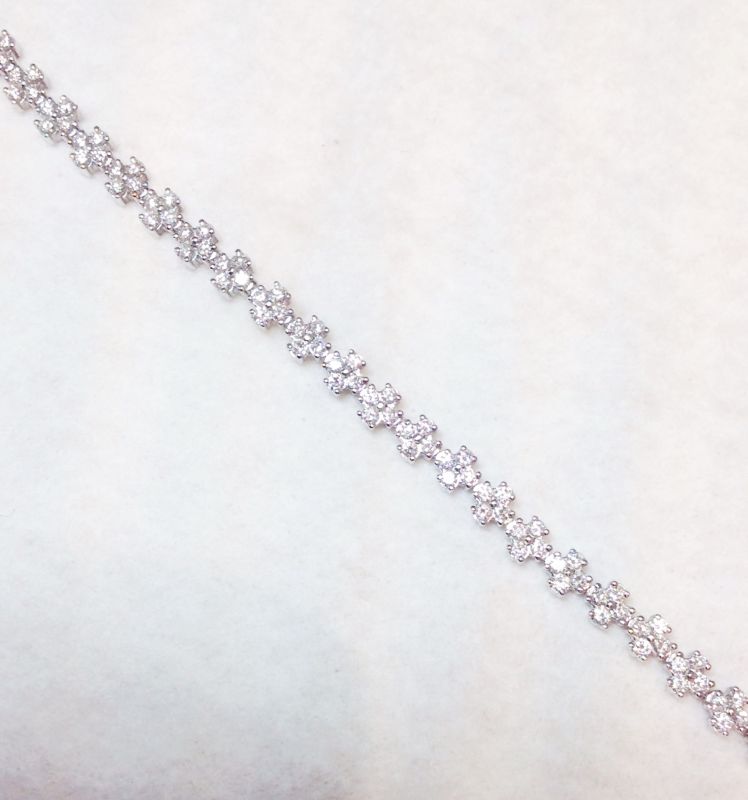 Diamond flower cluster line bracelet. Total diamond weight approx 4.14ct. Colour G/H, clarity VS2/SI1 assessed. 18ct gold. New replacement value £6,500.