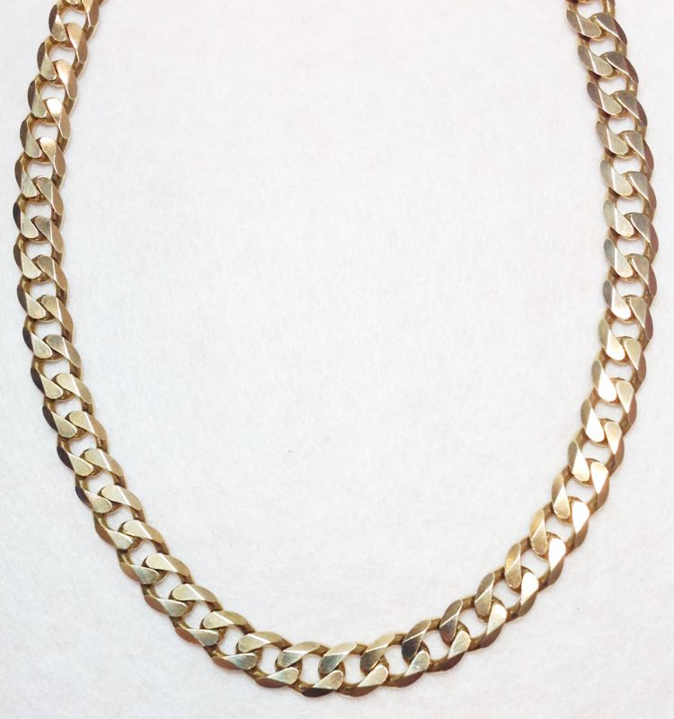 9ct gold curb chain. 22″ length. Weighs approx 89 grams
